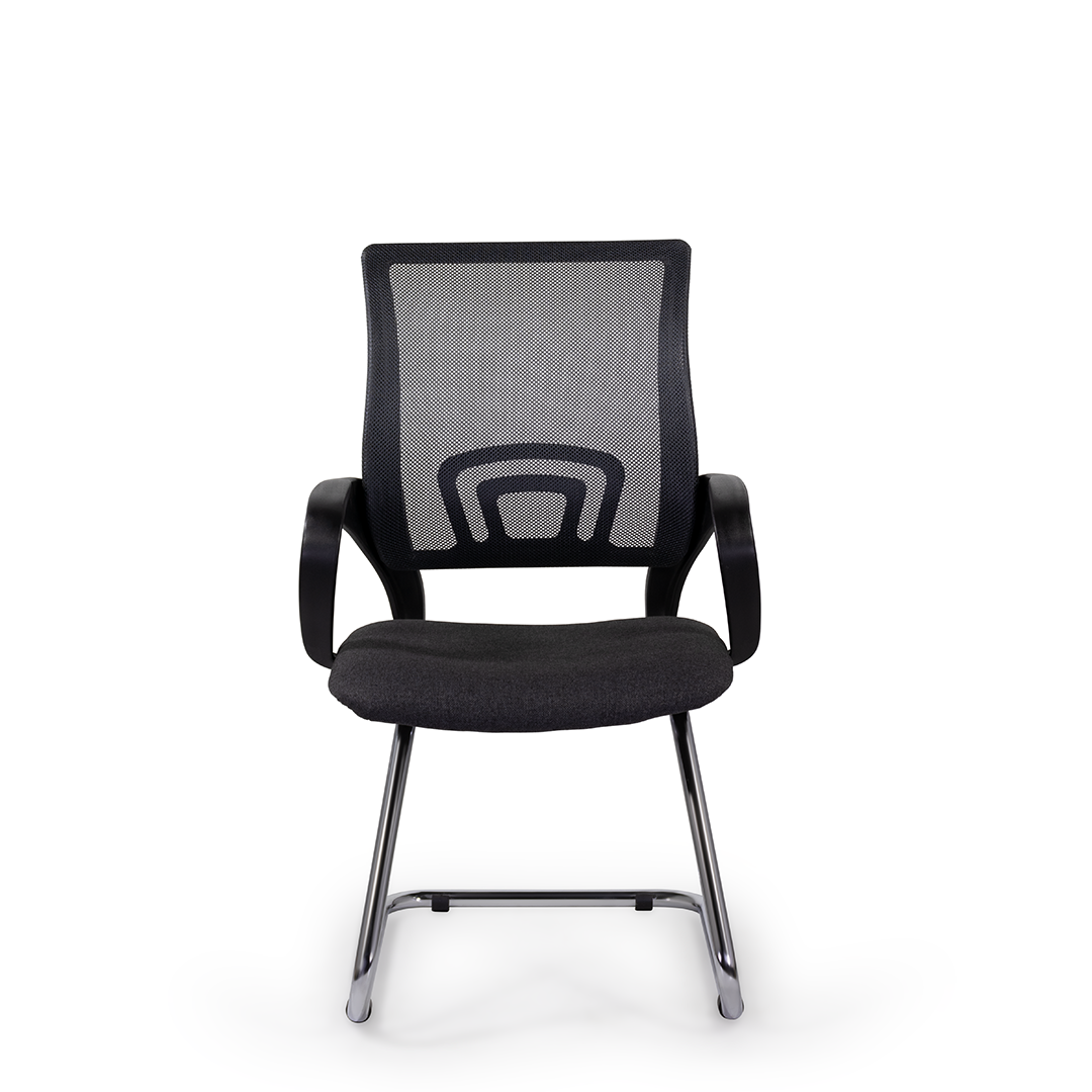 Современное компактное кресло. Сетчатая спинка обеспечивает оптимальную циркуляцию воздуха, что немаловажно при длительной работе. Широкие пластиковые подлокотники являются частью каркаса.