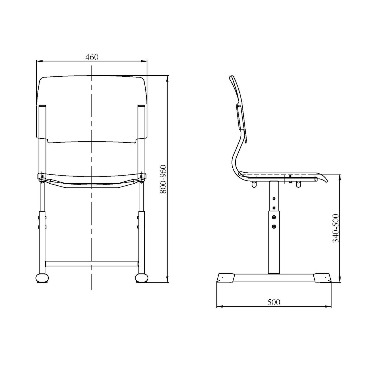 Стул регулируется по высоте, соответствует ростовым группам 3-5, 4-6 и 5-7. Соответствует высоте: группа 3-5 – 340 мм, 380 мм, 420 мм, группа 4-6 – 380 мм, 420 мм, 460 мм, группа 5-7 – 420 мм, 460 мм, 500 мм.